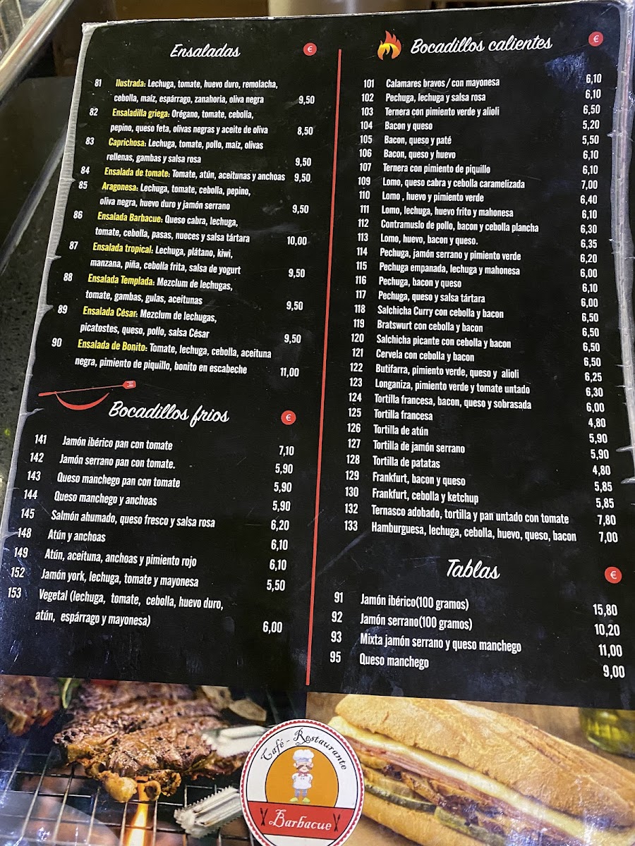 The tapas, especially the famed patatas bravas, shine with flavor, while the mini bocadillos—stuffed with bacon, cheese, and eggs—deliver satisfying bites every time. Stay open to surprises; as one loyal patron noted, every visit unveils a new favorite, like the delicious mushrooms with ham that are impossible to forget. Cafe-Restaurante Barbacue is not just a restaurant; it's a culinary experience that invites you to feast joyfully, time and again. Don’t miss out on exploring their delectable offerings!