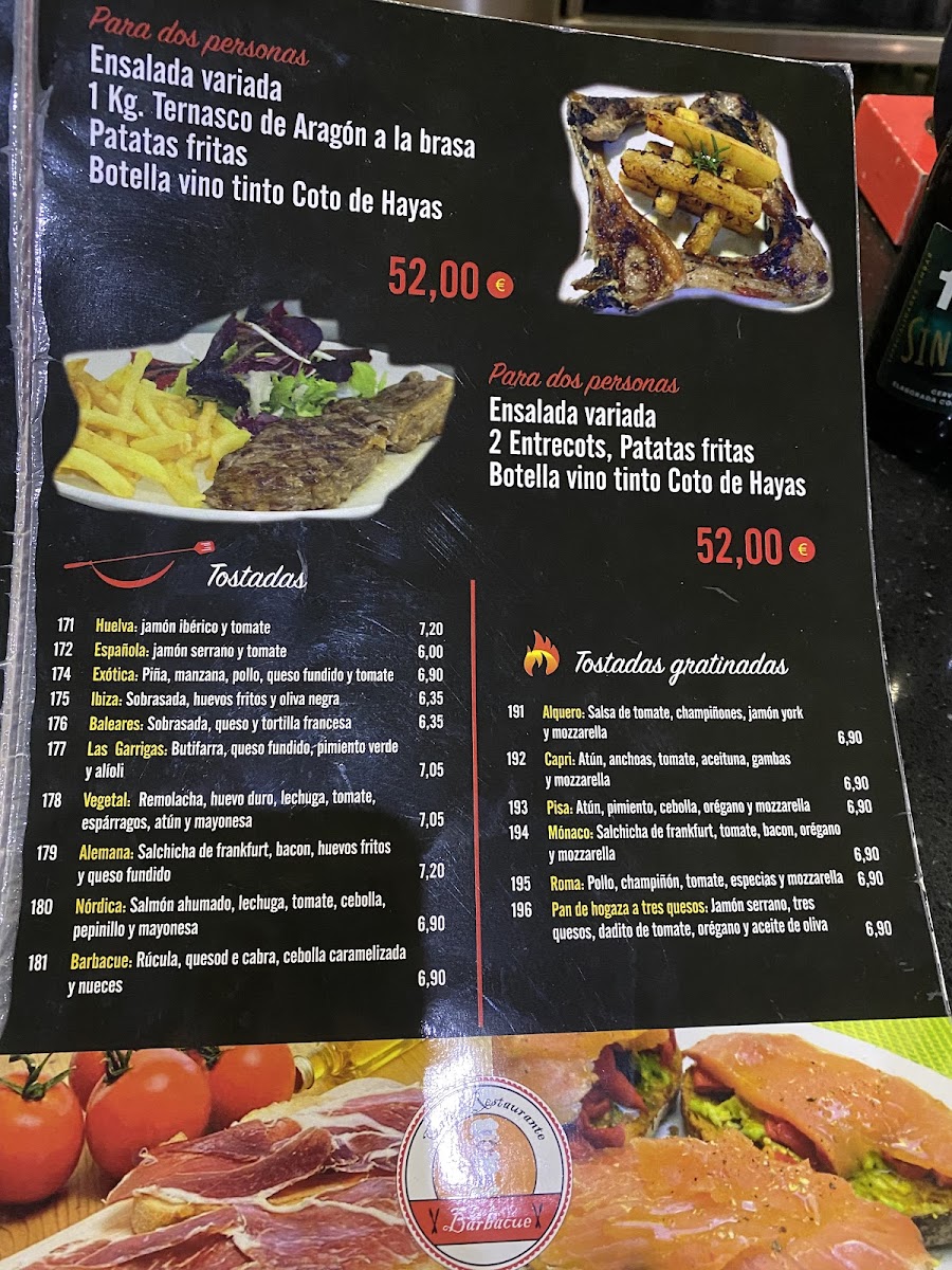 Introducing Cafe-Restaurante Barbacue, a culinary gem located in Zaragoza, Spain. This vibrant eatery perfectly caters to any moment of your day, whether you're starting with a hearty breakfast, enjoying a casual tapa, or indulging in a delightful lunch or dinner. Guests rave about the remarkable variety found on the menu, featuring mouthwatering dishes that are simply irresistible.